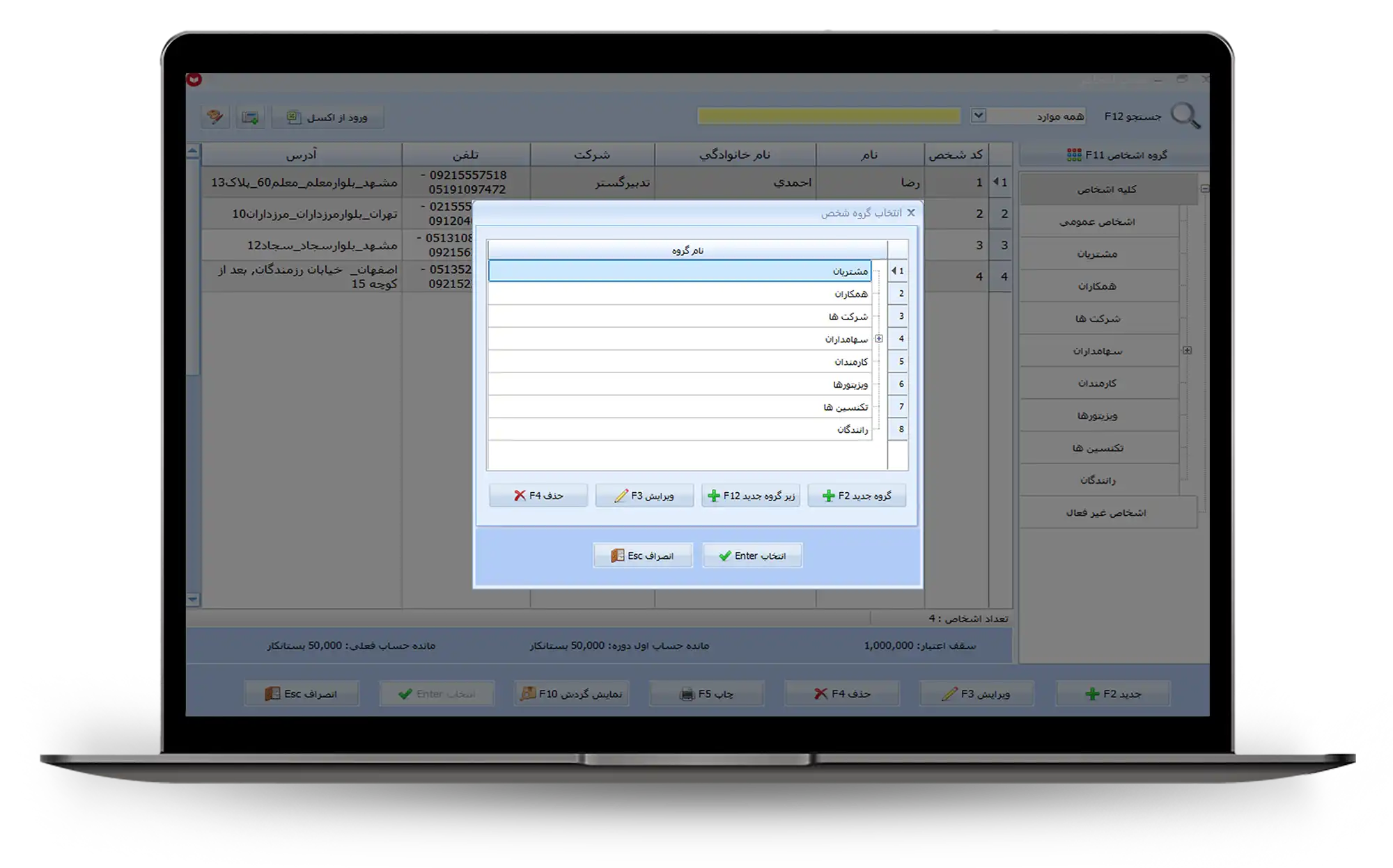 - گزارش جامع بدهی و بستانکاری اشخاص ( لیست بدهکاران، بستانکاران و بی حساب ها )