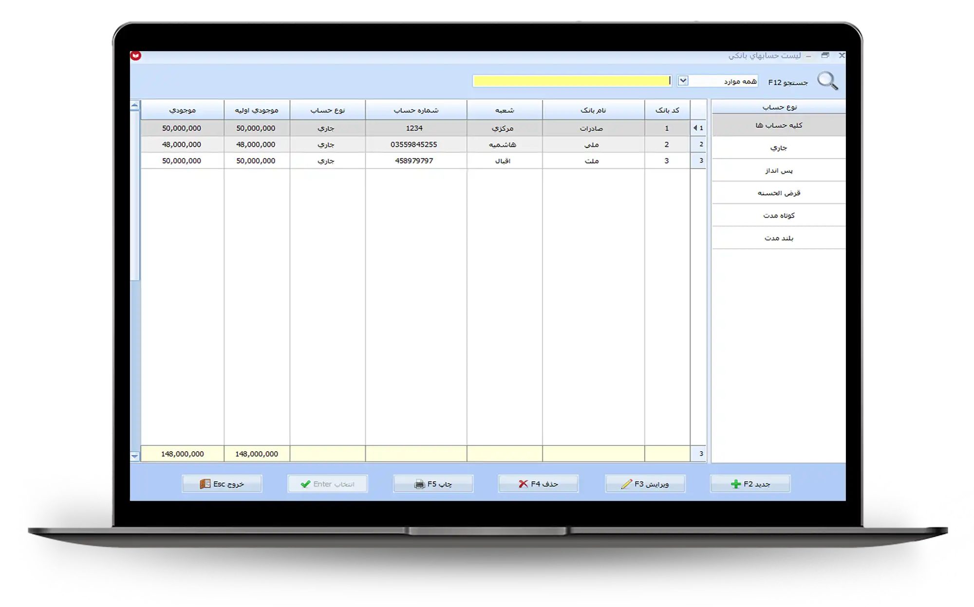 - امکان اعمال فیلتر در زمان گزارش گیری از حساب های بانکی