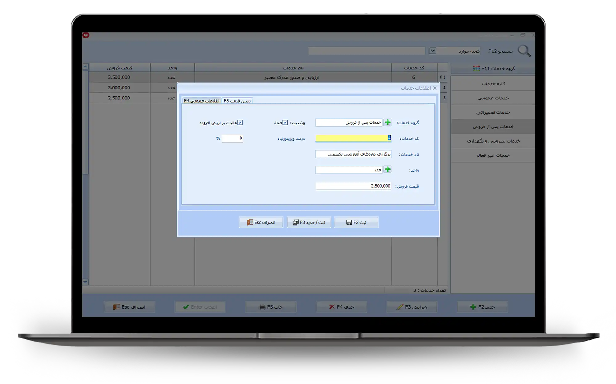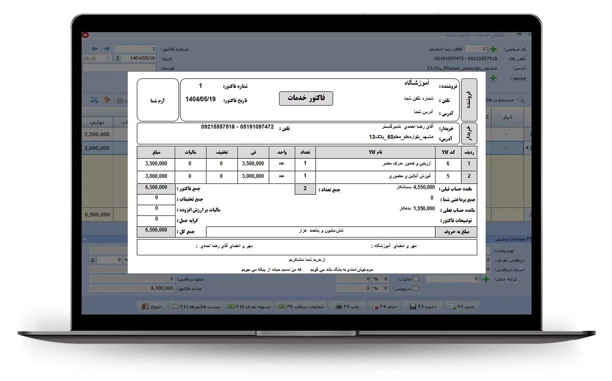 - فروش همزمان کالا و خدمات در یک فاکتور