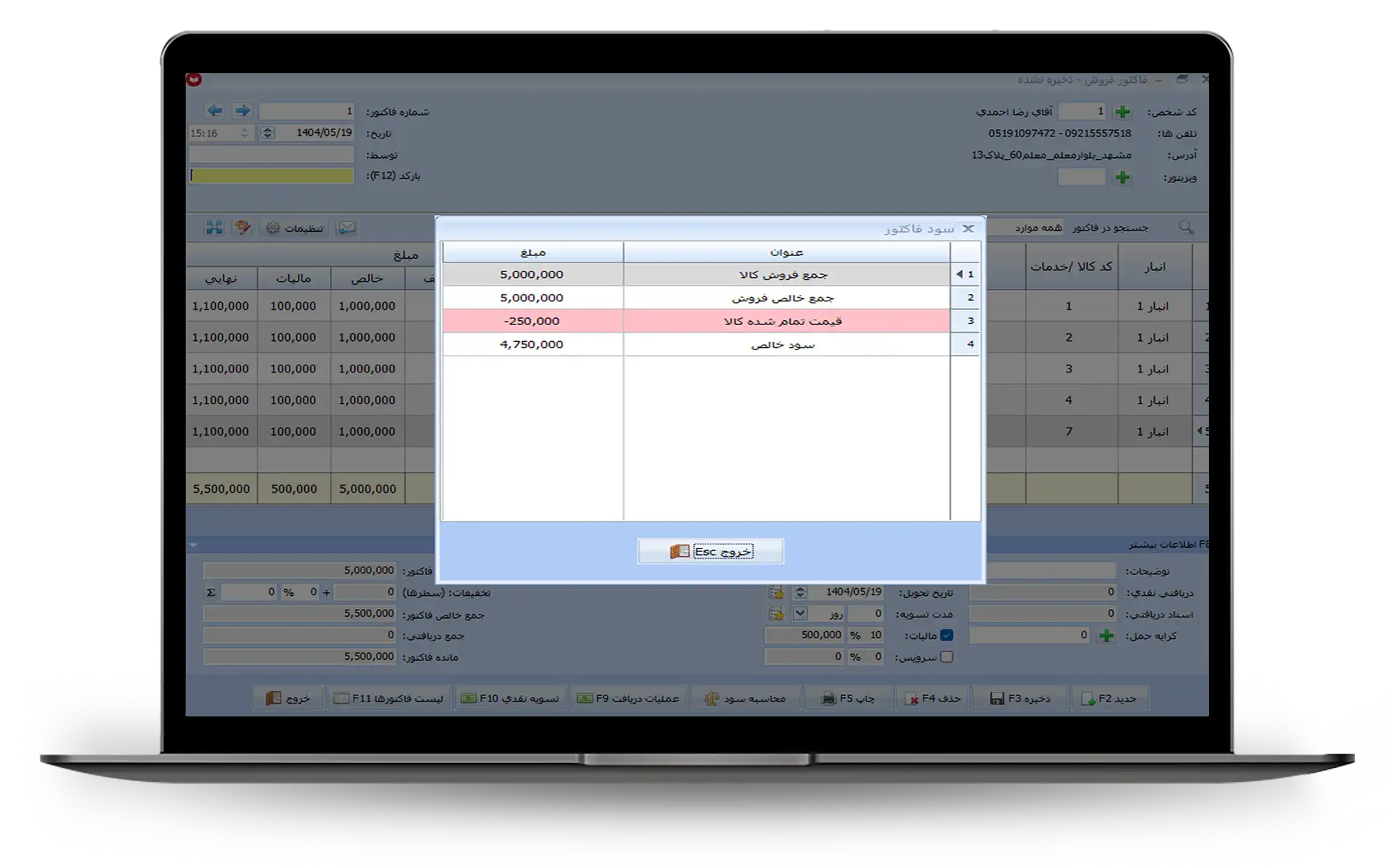 - گزارش سود حاصل از هر فاکتور فروش یا مجموعه ای از فاکتور های انتخاب شده