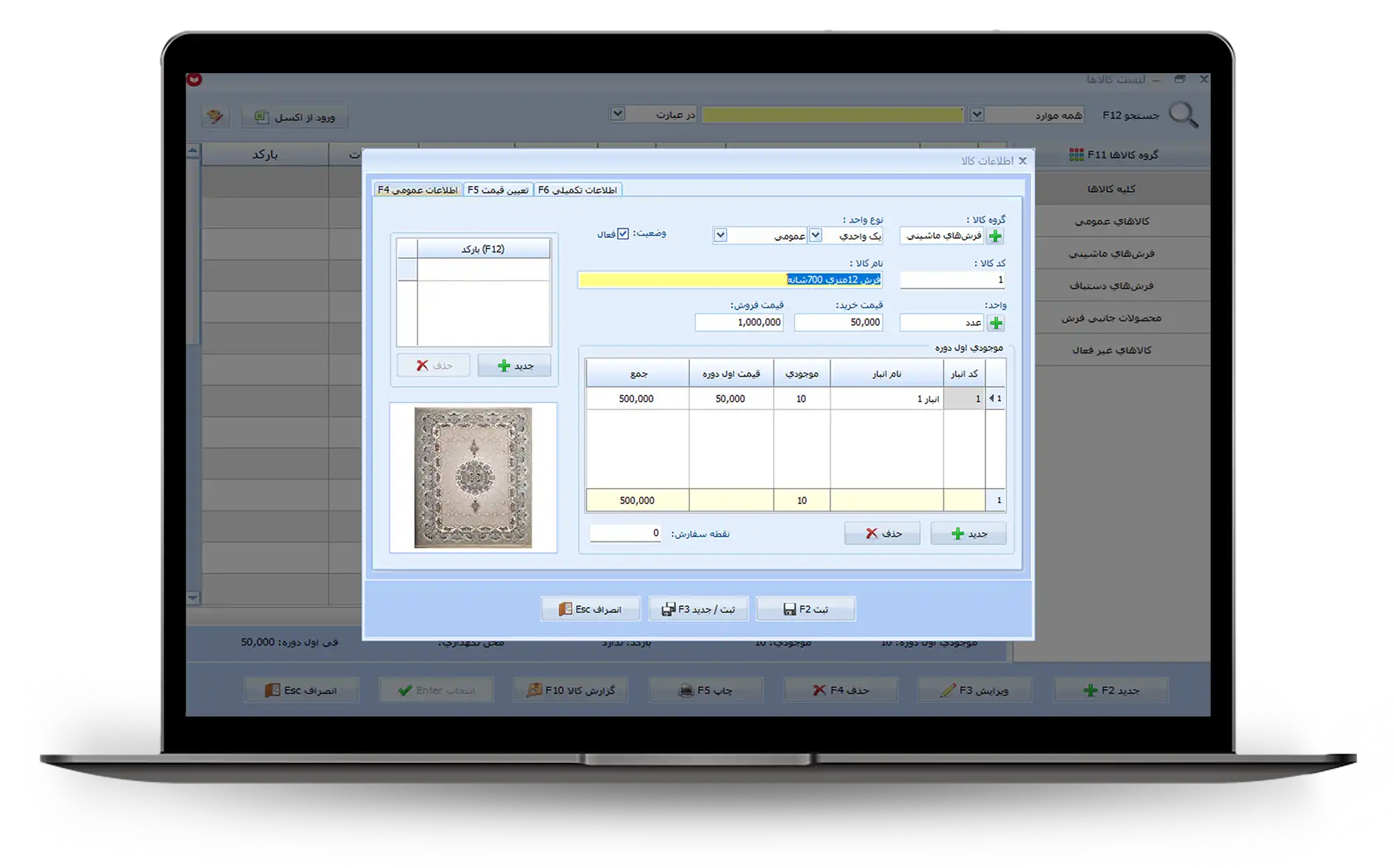 امکانات تخصصی نرم افزار حسابداری فرش فروشی معین