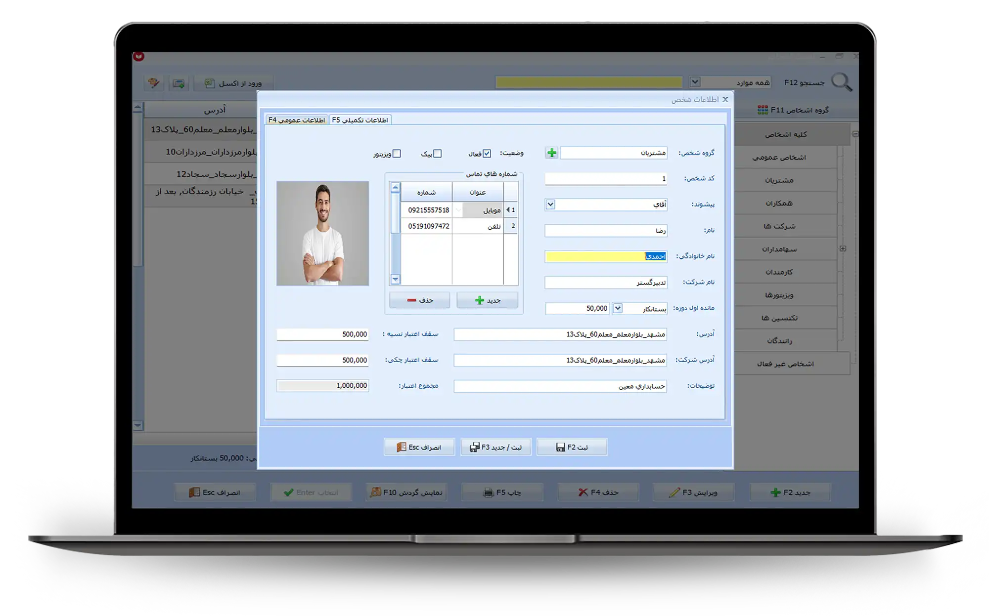 - امکان تعیین سقف اعتبار برای ویزیتورها و مشتریان و هشدار در هنگام گذشتن از سقف تعیین شده