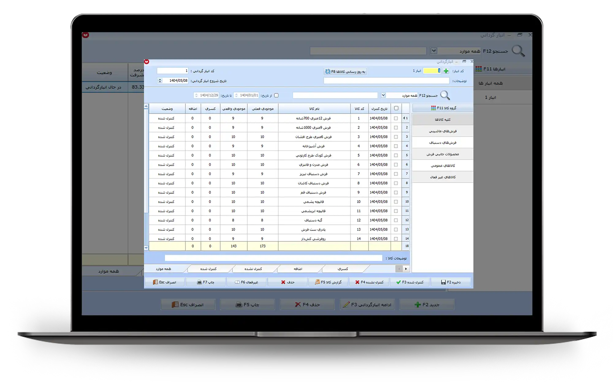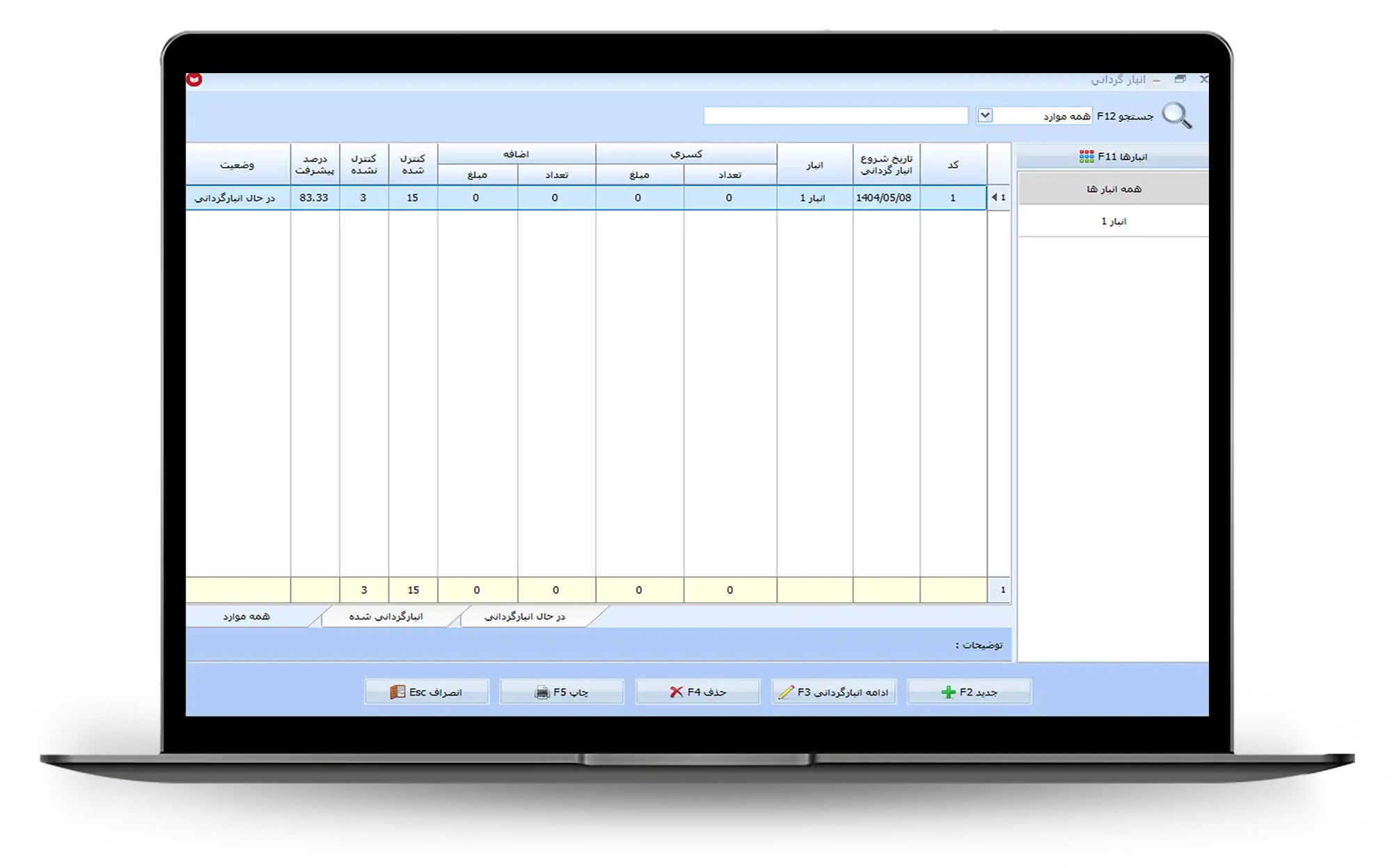 - تفکیک وضعیت کالاها به دسته های کنترل شده، کنترل نشده، کسری و اضافی در انبارگردانی