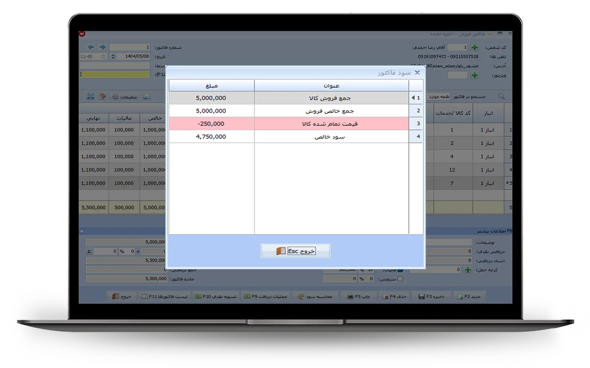 - گزارش سود حاصل از هر فاکتور فروش یا مجموعه ای از فاکتور های انتخاب شده
