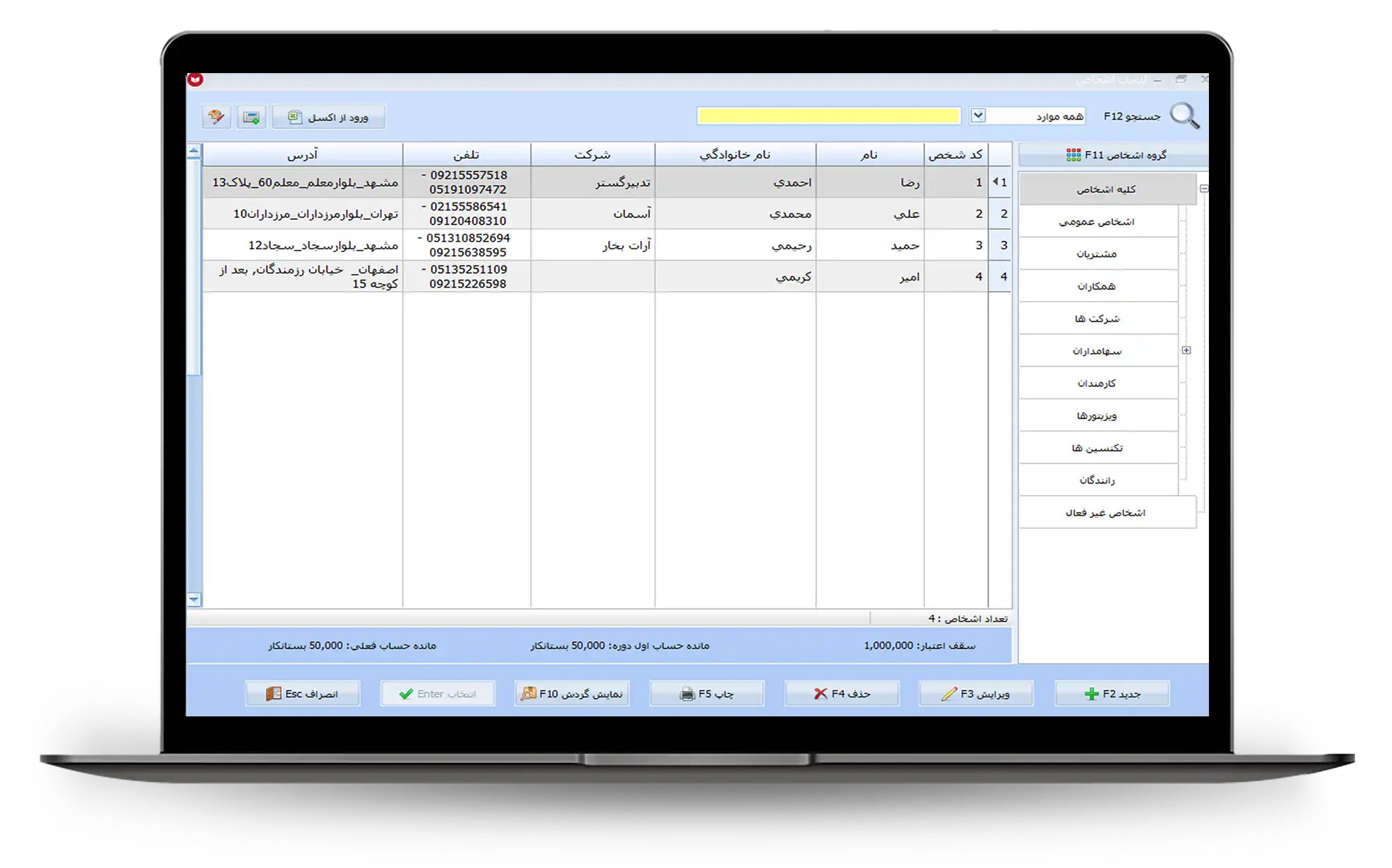 - گزارش جامع بدهی و بستانکاری اشخاص ( لیست بدهکاران، بستانکاران و بی حساب ها )