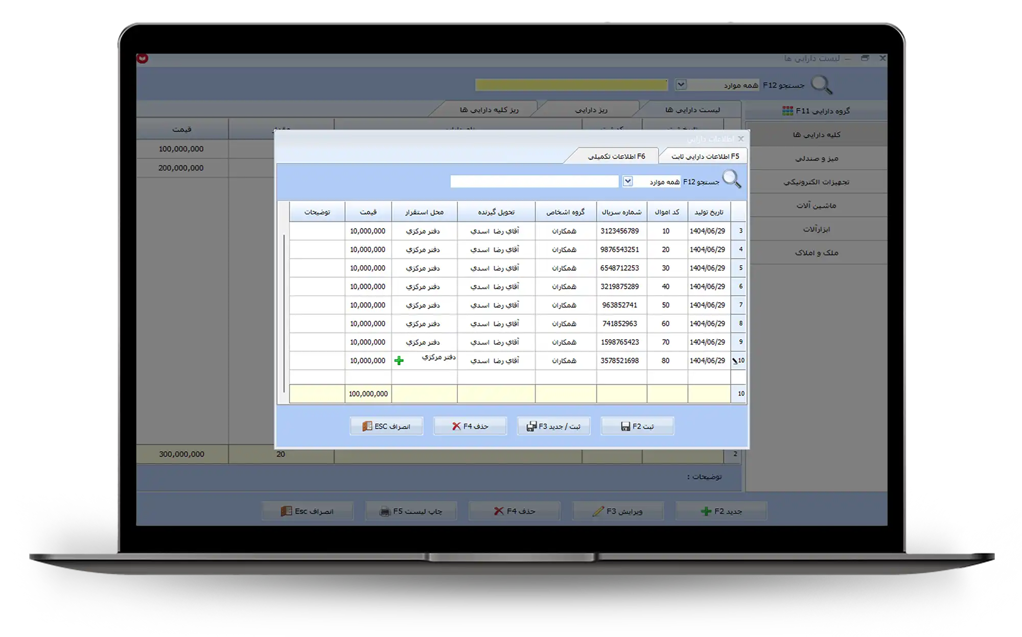 - میتوانید برای هر دارایی مشخص کنید که در کجا قرار دارد و مسئول نگهداری آن چه کسی است. این قابلیت، نظارت و پاسخگویی را افزایش میدهد.