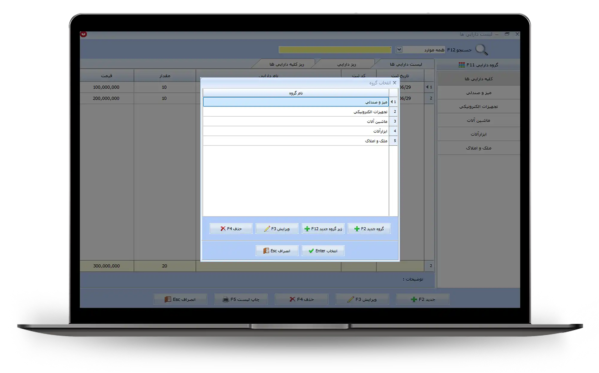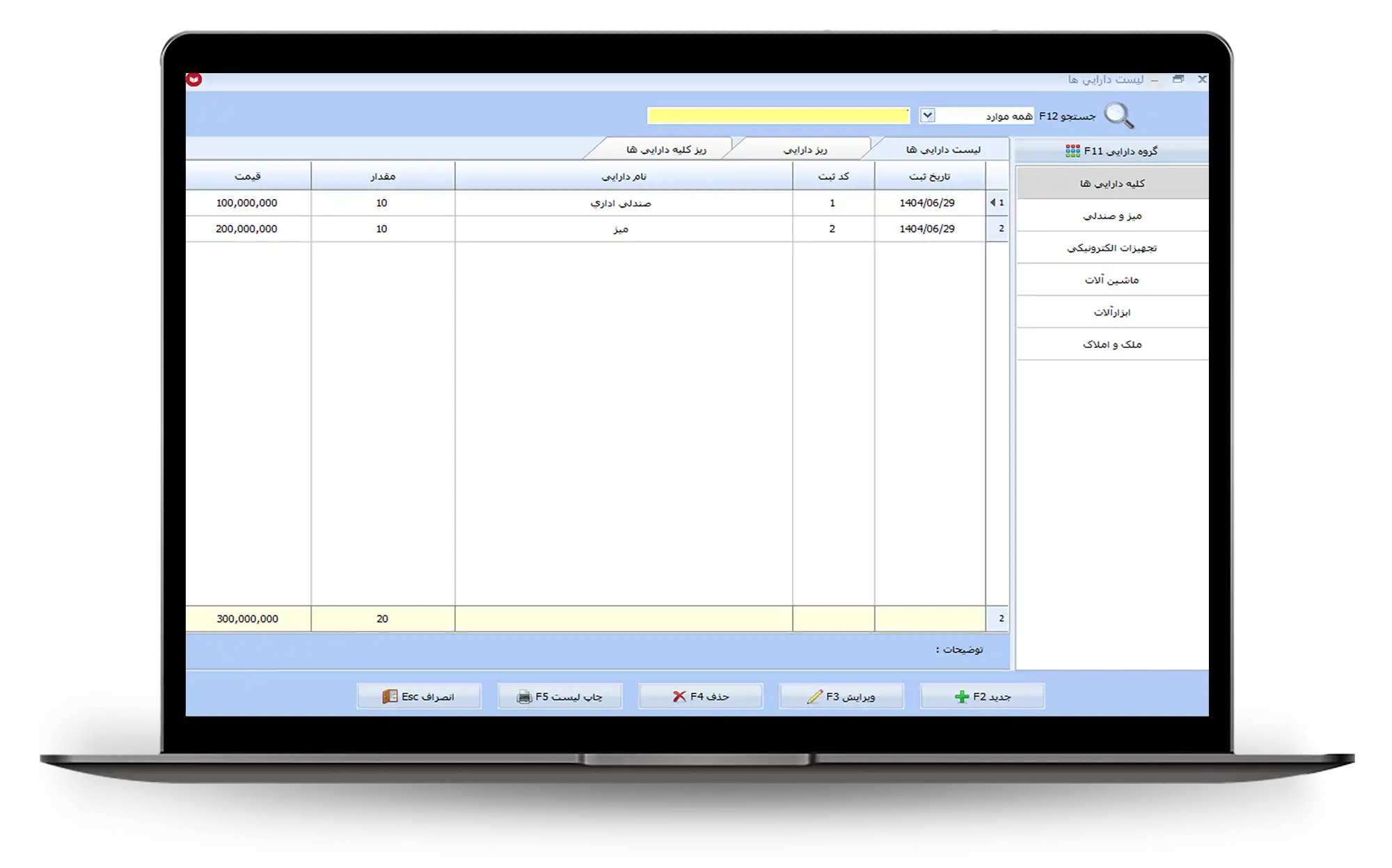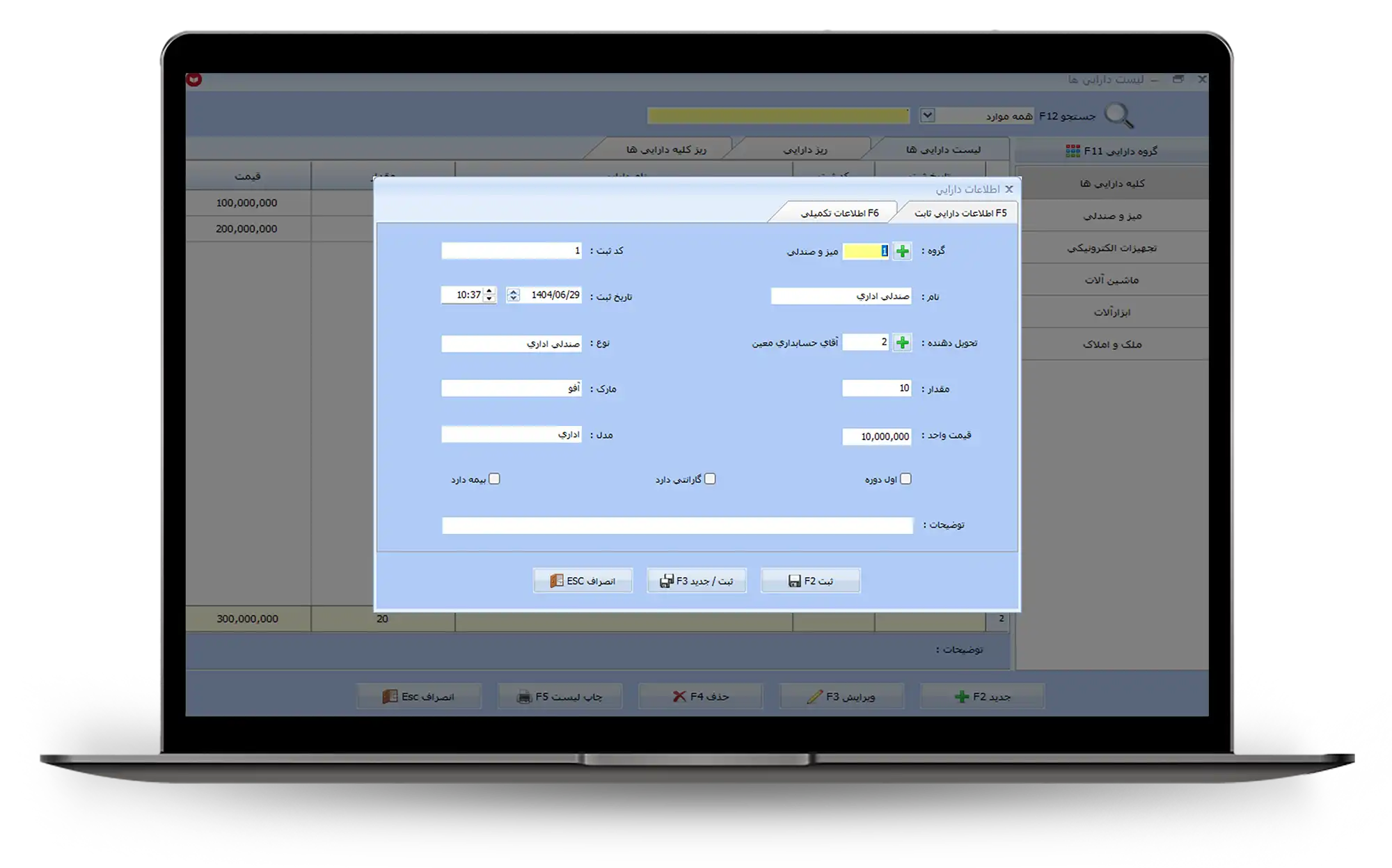 افزونه مدیریت اموال و دارایی های ثابت معین