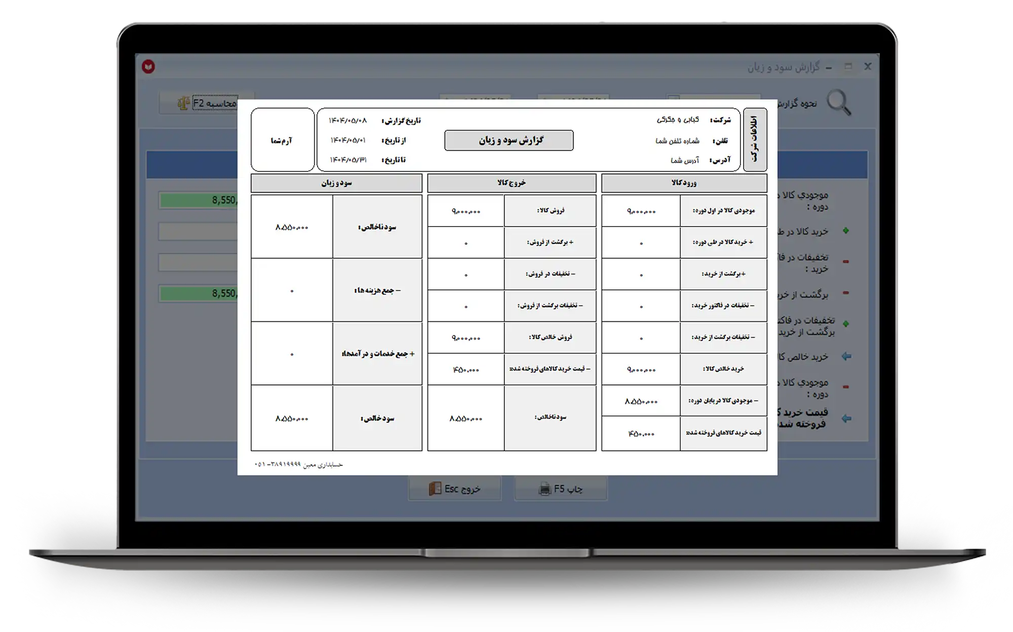 - نرم افزار گزارشهای مالی متنوعی از جمله سود و زیان، فروش روزانه و گردش حساب ارائه میدهد. این گزارشها تصمیمگیریهای مالی را آسانتر میکنند.
