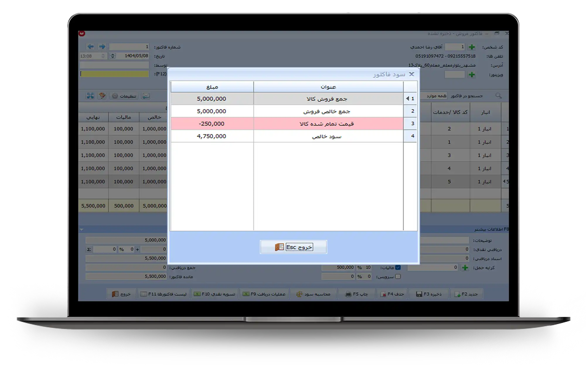- گزارش سود حاصل از هر فاکتور فروش یا مجموعه ای از فاکتور های انتخاب شده