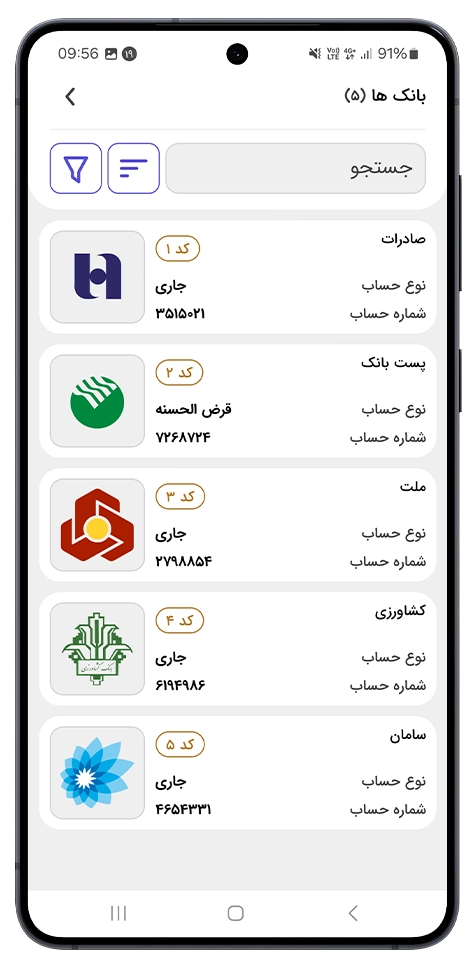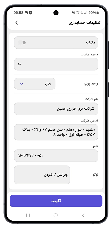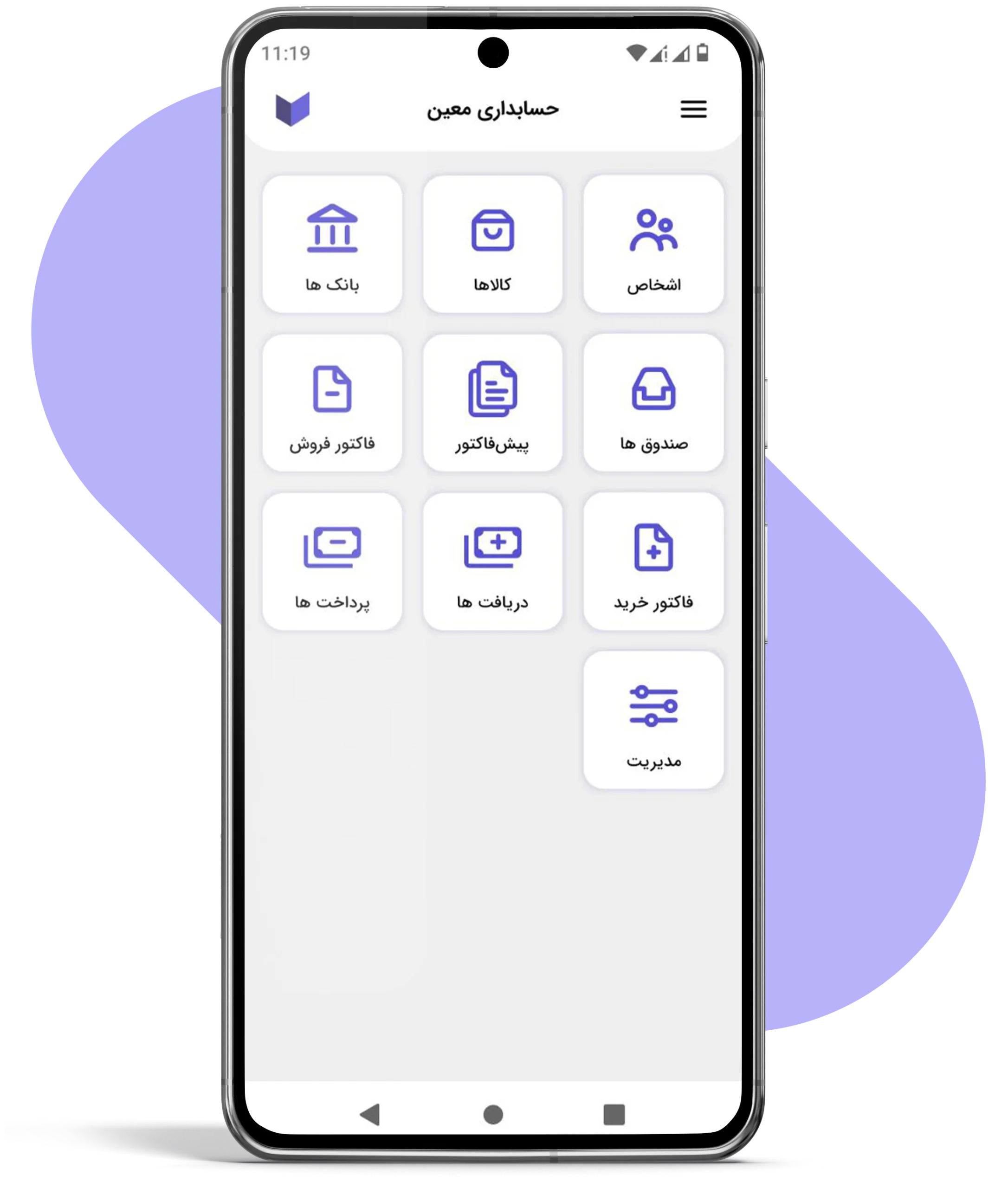 اپلیکیشن آندورید حسابداری معين می خواهم