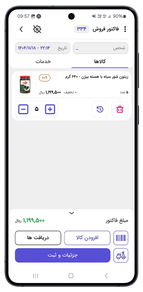 کاربرپسند بودن این اپلیکیشن به شما کمک میکند تا ثبت سفارشات فروش و محصولات به راحتی و در کمترین زمان انجام شود. -