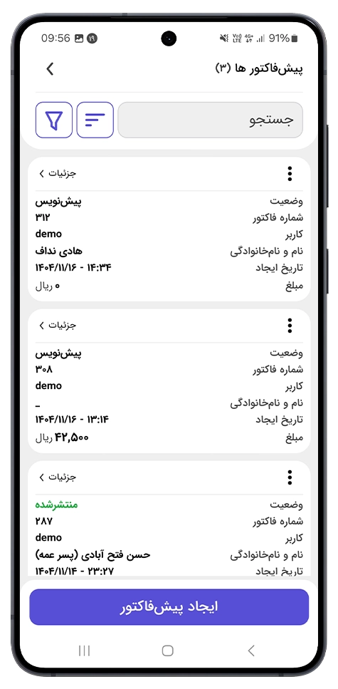 خیر، این موارد در اپلیکیشن موجود نیست، اما در نرمافزار حسابداری میتوانید آنها را مشاهده کنید.