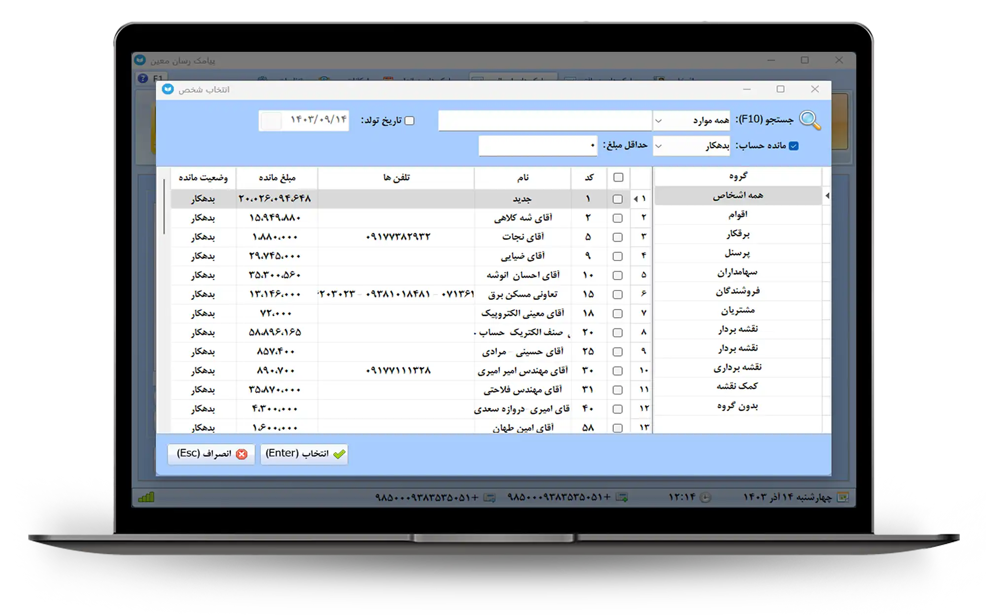 - برای کاهش تاخیر در وصول مطالبات، یادآوری های هوشمند سررسید چک، اقساط و مانده حساب به شکل زمان بندی شده ارسال می شود. می توانید قبل از سررسید، در روز سررسید و پس از آن پیام هایی با متن متفاوت بفرستید تا احتمال پرداخت به موقع بالا برود و تیم مالی کمتر تماس تلفنی تکراری داشته باشد.