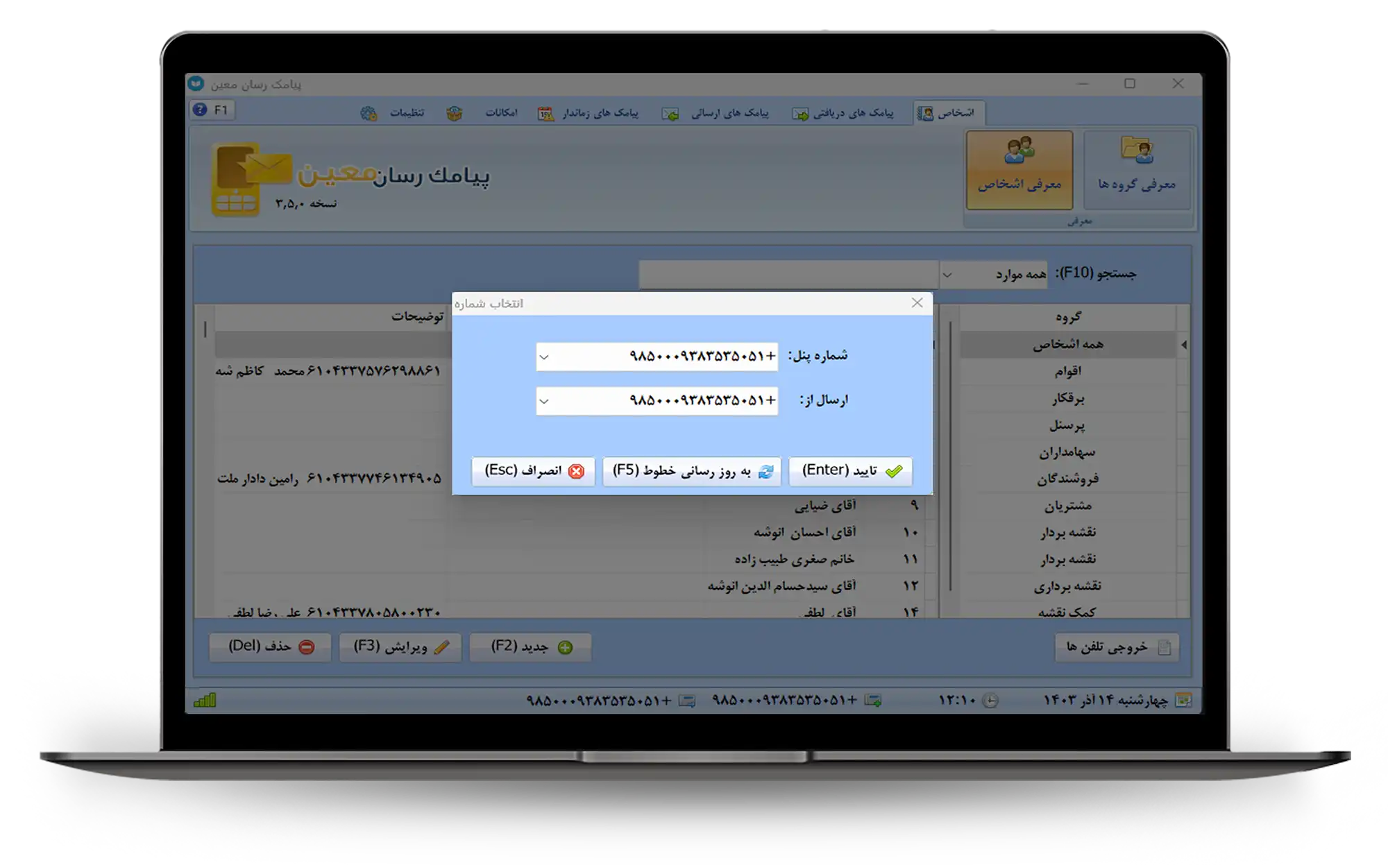 - دفترچه مخاطبان به شما امکان می دهد مخاطبان را برچسب گذاری و گروه بندی کنید و وضعیت اشتراک یا لغو دریافت پیام را مدیریت نمایید. مشتری می تواند با یک دستور ساده از دریافت پیام تبلیغاتی انصراف دهد و شما همچنان پیام های تراکنشی حیاتی را مطابق قوانین ارسال کنید تا هم تجربه مشتری بهتر شود و هم ریسک شکایت کاهش یابد.