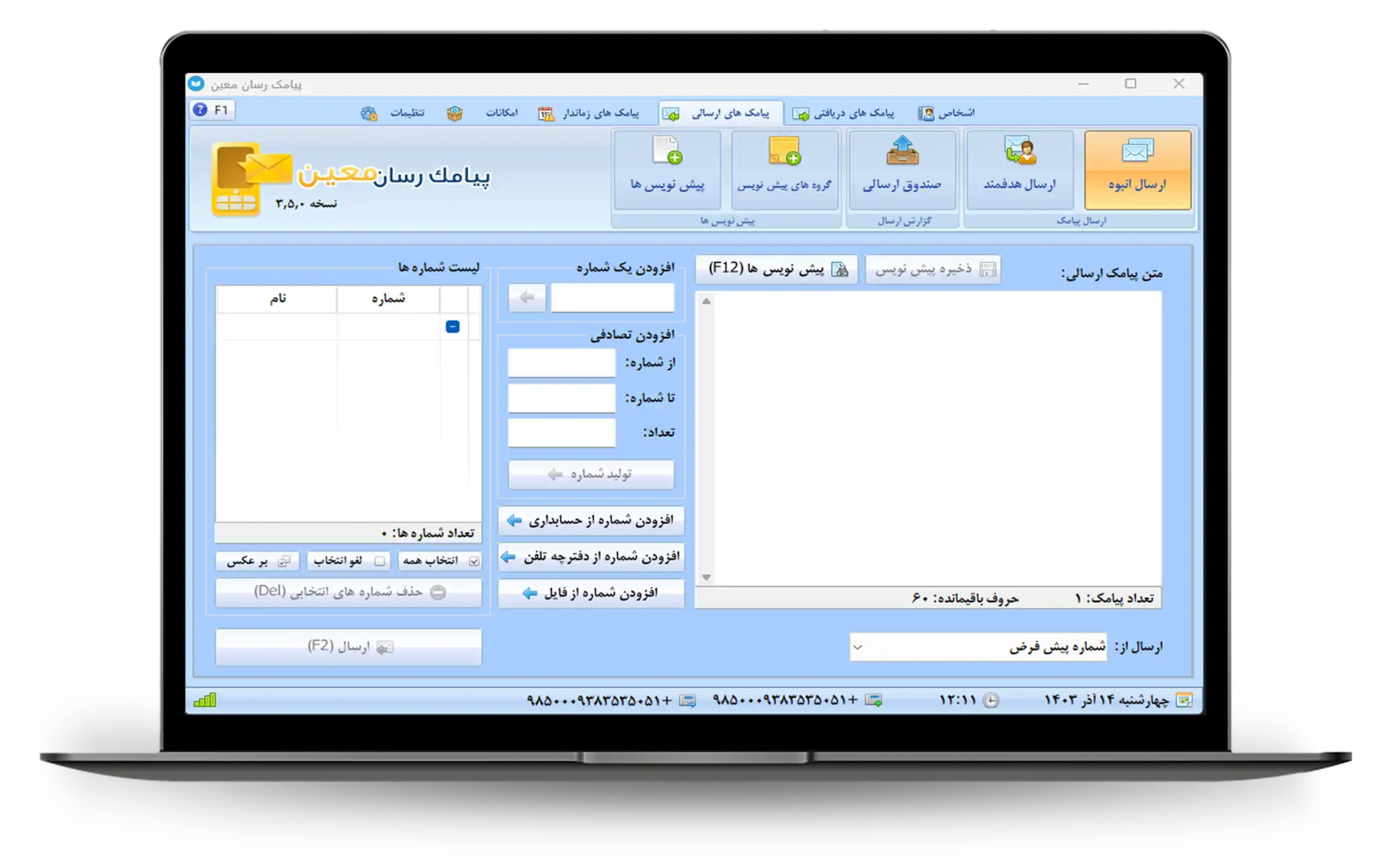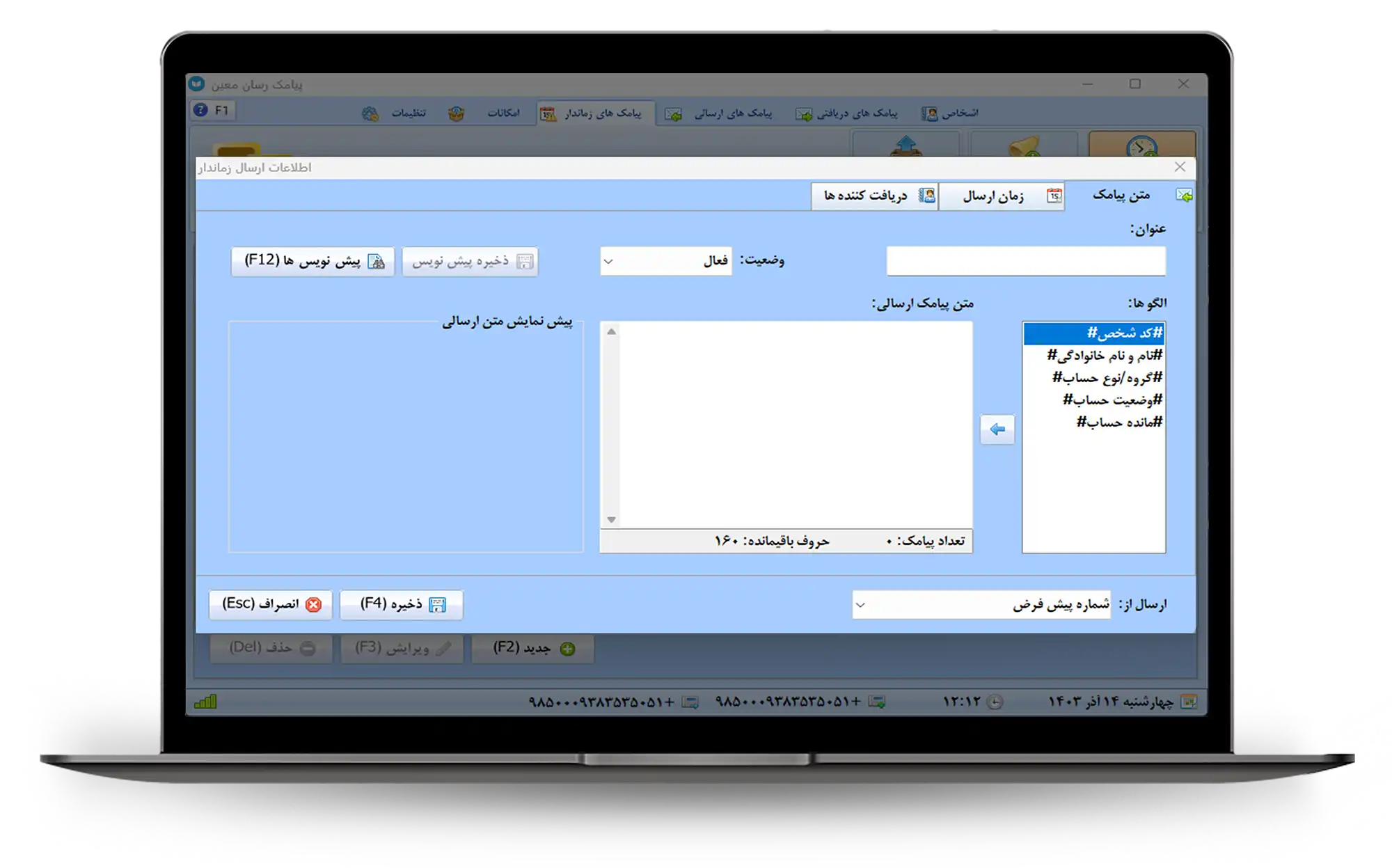 - برای سرعت در ارسال، الگو های پیام قابل تعریف است و متن ها قبل از استفاده قابل بررسی هستند. کاراکتر های فارسی و ایموجی پشتیبانی می شوند و افزونه طول پیام را محاسبه می کند تا از چند بخشی شدن ناخواسته جلوگیری شود. سازگاری با محدودیت های اپراتور ها باعث می شود نرخ خطا پایین بماند و پیام ها با تاخیر کم به مقصد برسند.