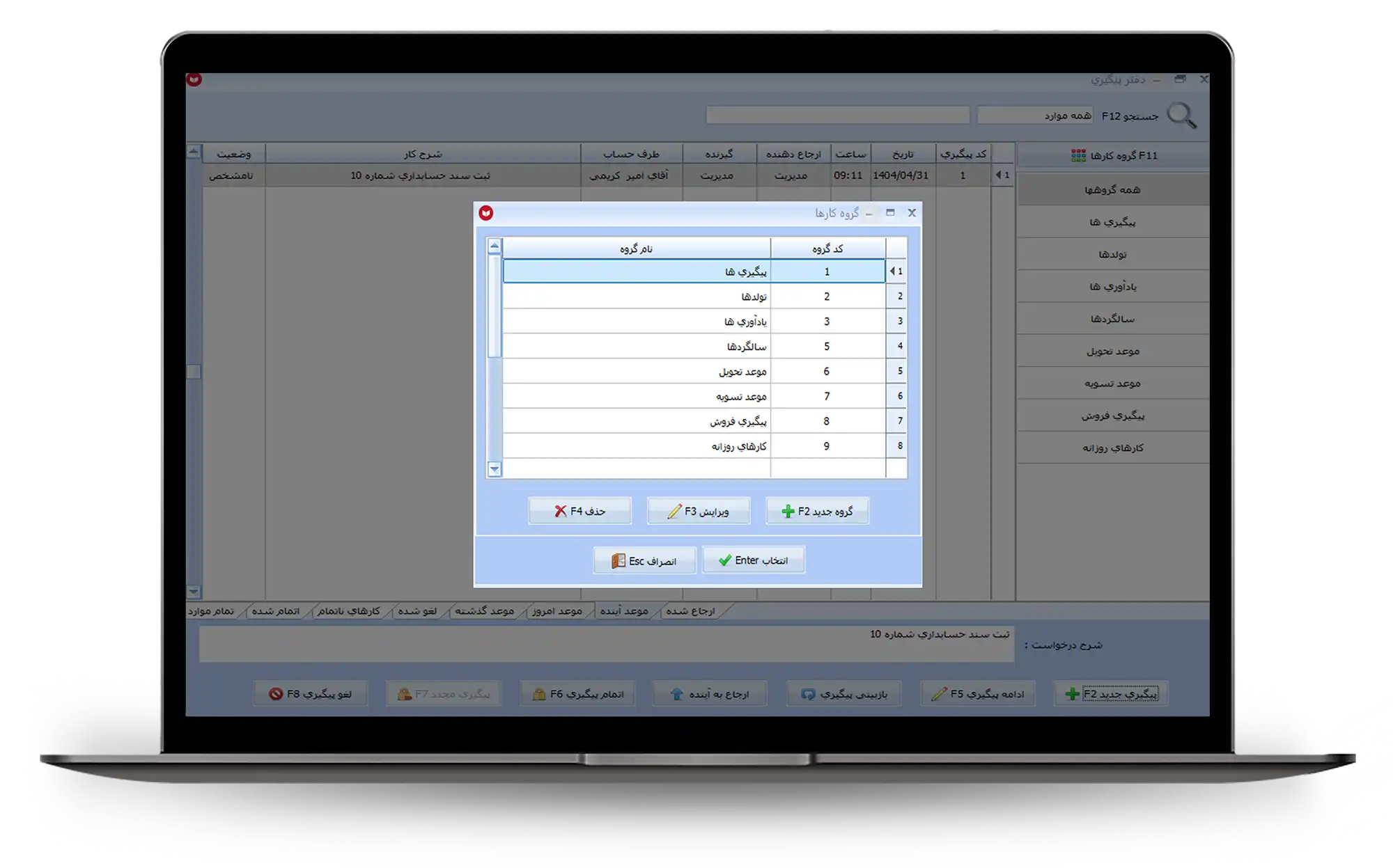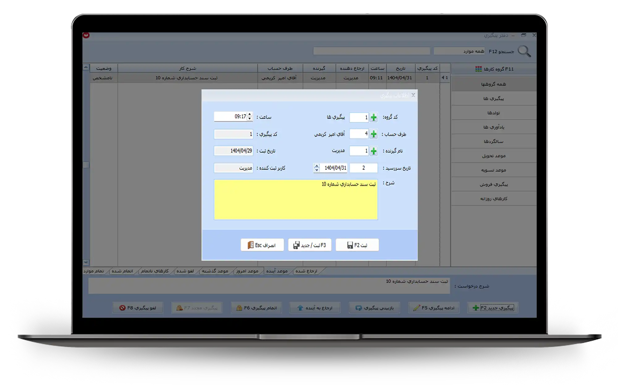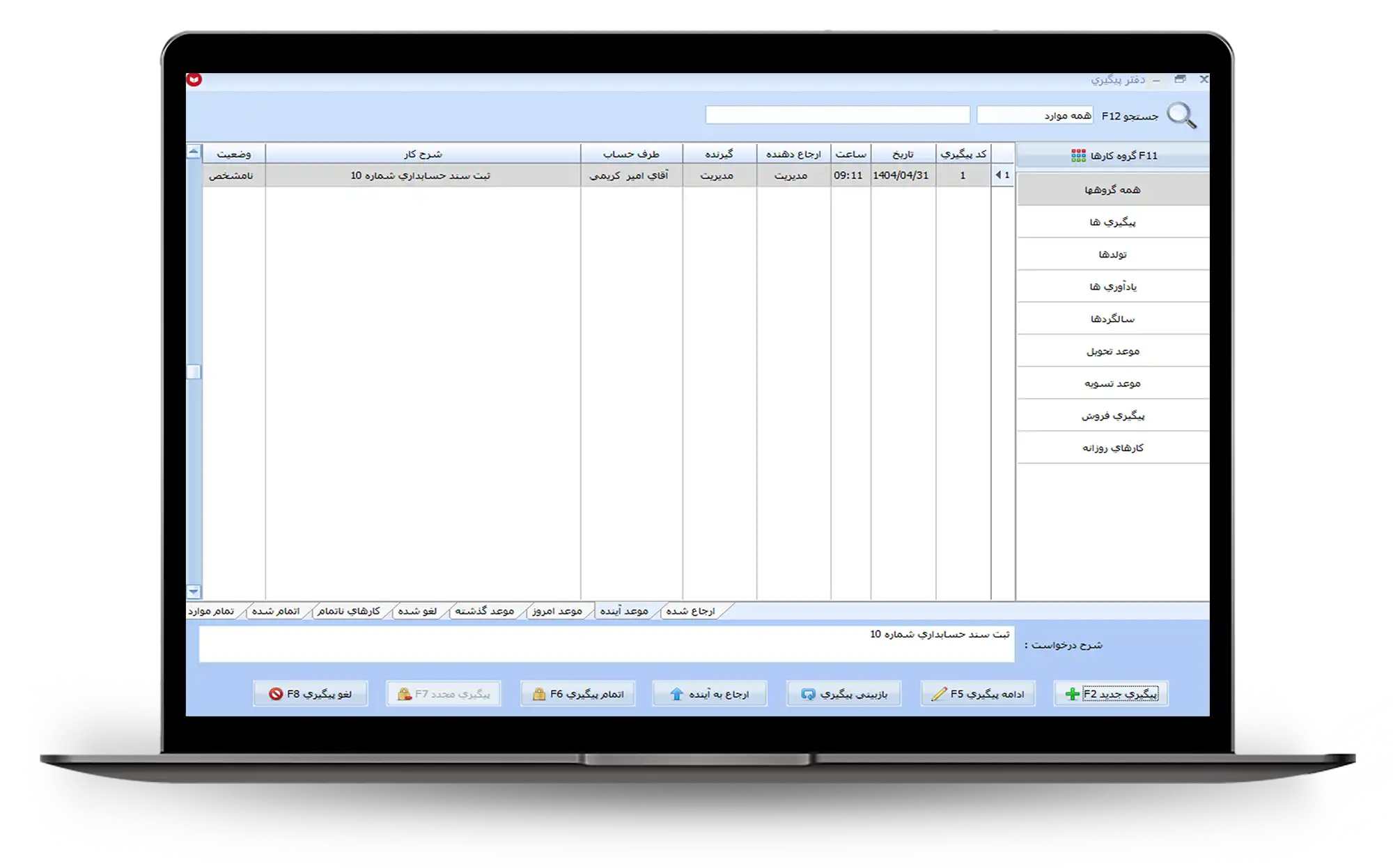 - برای هر فعالیت پیگیری یک نفر مسئول مشخص میشود تا وظیفه انجام آن مشخص باشد و پاسخگویی بهتری داشته باشید.
